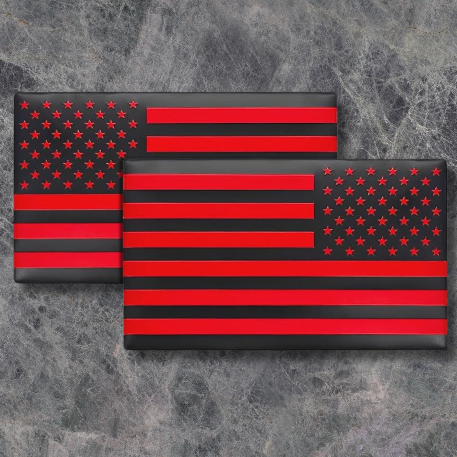 DragonWorks Performance is proud to introduce our 3D Metal All Black and Red American Flag Emblem Decal Stickers – a bold way to show your pride and honor the bravery of first responders! Our flag decals are made of die cut stainless steel and imprinted with with a stunning combination of matte black background enhanced with gloss red stars and stripes that symbolizes courage and sacrifice. Built to last, these emblems are resistant to UV sunlight, rain, chemicals such as oils and fuels, and is carwash resistant against soap chemicals as well as carwash machines with high flow dryers.