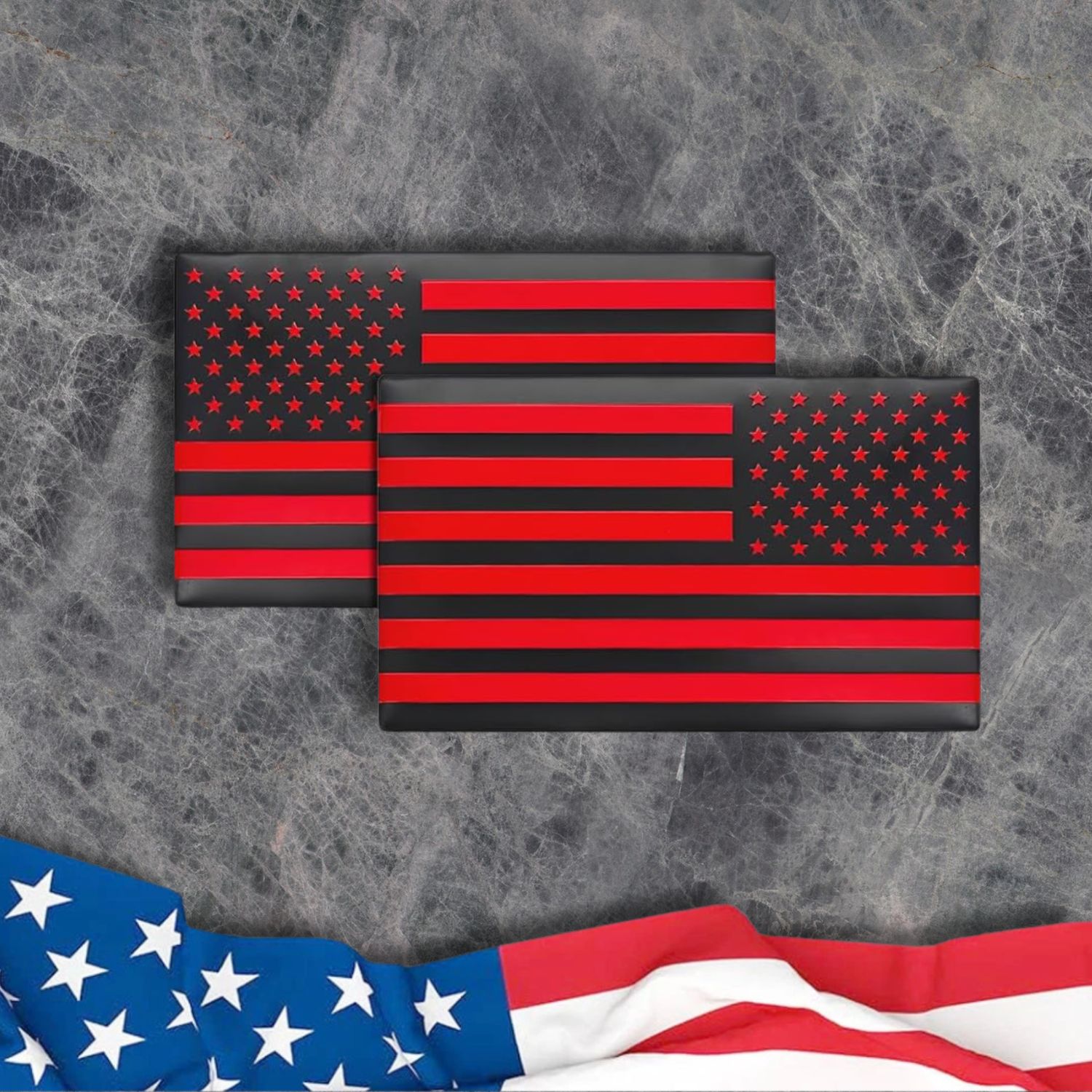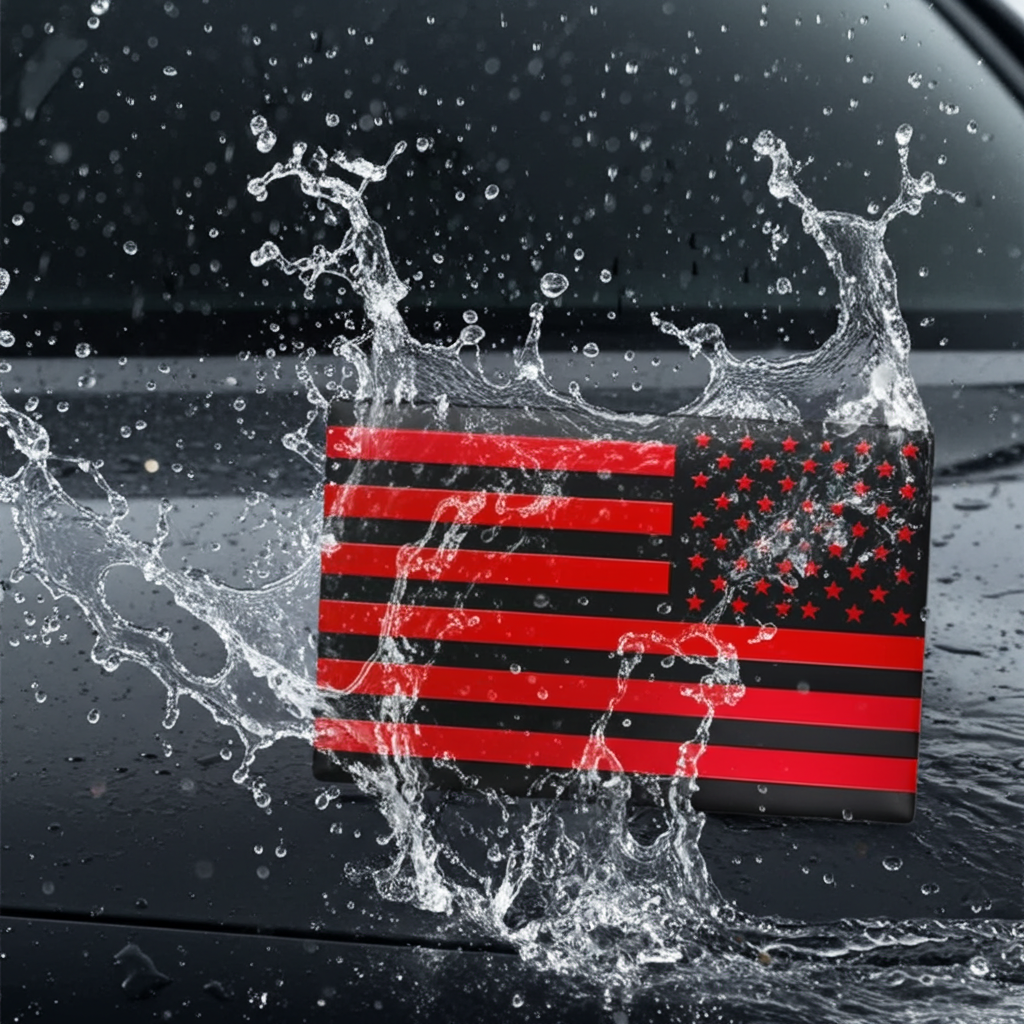 Our 3D Metal All Black and Red American Flag Emblem Decal Stickers’ sleek design will hug your vehicle for a clean uniform look.