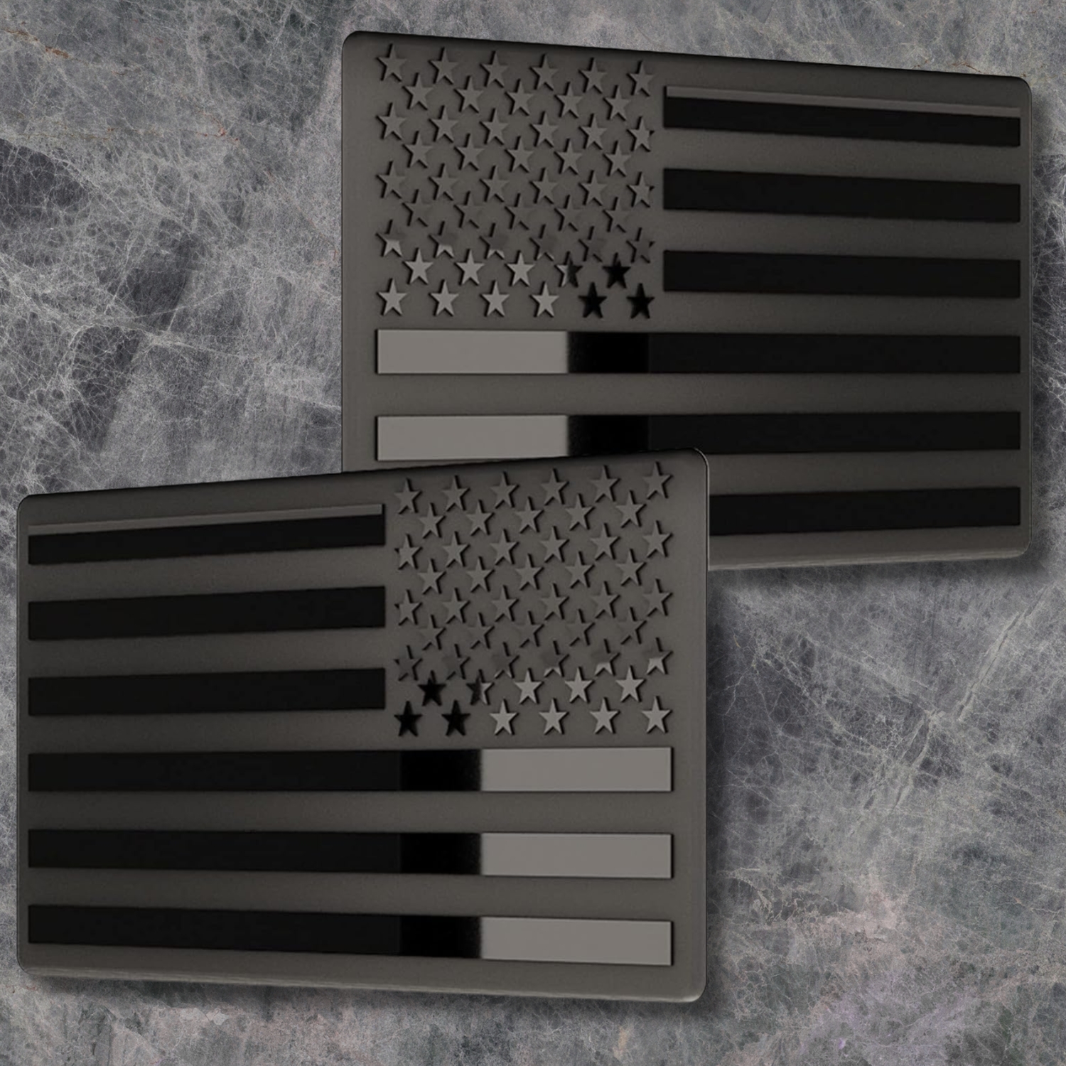 DragonWorks Performance is proud to introduce our line of Black American Flag Sets! Our flags are made of die cut stainless steel and imprinted with both a gloss and matte black finish that is resistant to UV sunlight, rain, chemicals such as oils and fuels, and is carwash resistant against soap chemicals as well as carwash machines with high flow dryers.